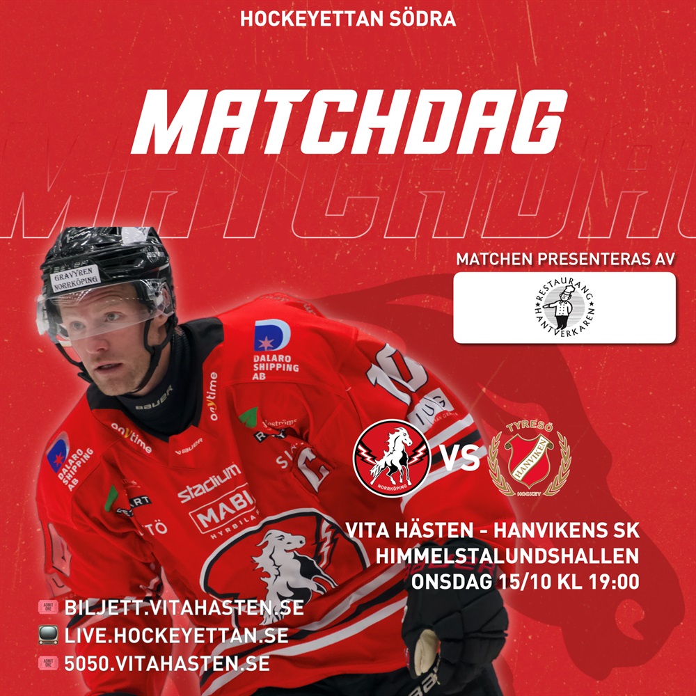 På onsdag den 15 oktober kliver Vita Hästen ut på isen igen – den här gången mot gästande Hanvikens SK i Himmelstalundshallen. Det blir en fullspäckad kväll med temamatch, firande, aktiviteter för alla åldrar och massor av rödvitt hjärta.