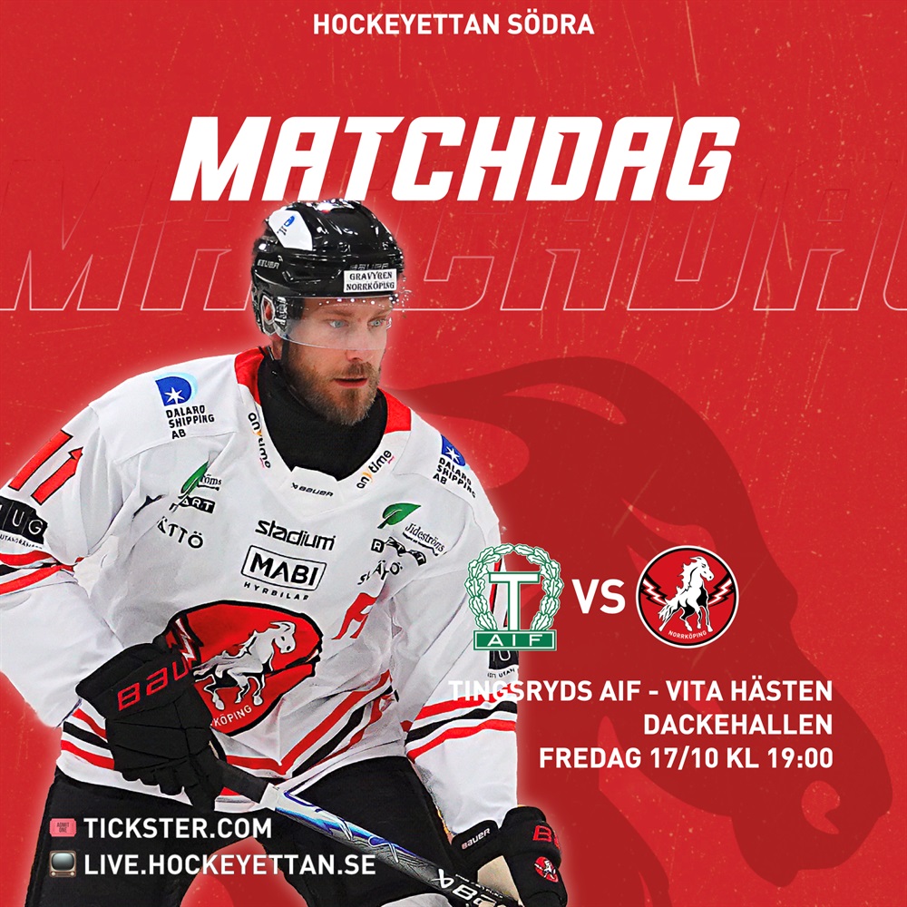 Efter en känslostark hemmakväll i Himpa är det dags att ladda om för nästa utmaning – den här gången på bortaplan. På fredag den 17 oktober kl. 19:00 gästar Vita Hästen klassiska Tingsryds AIF i Dackehallen.